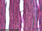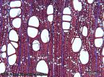 | Description anatomique du bois (codes IAWA pour les bois feuillus) : Cernes de croissance : 2 : limites de cernes indistinctes ou absentes. Vaisseaux : 5 : bois à pores disséminés ; 13 : perforations simples ; 22 : ponctuations intervasculaires en quinconce ; (25 : ponctuations intervasculaires fines (4–7 μm)) ; 26 : ponctuations intervasculaires moyennes (7–10 μm) ; 30 : ponctuations radiovasculaires avec des aréoles distinctes ; semblables aux ponctuations intervasculaires en forme et en taille dans toute la cellule du rayon ; (31 : ponctuations radiovasculaires avec des aréoles très réduites à apparemment simples : ponctuations rondes ou anguleuses) ; 32 : ponctuations radiovasculaires avec des aréoles très réduites à apparemment simples : ponctuations horizontales (scalariformes) à verticales (en balafres) ; (33 : ponctuations radiovasculaires de deux tailles distinctes ou de deux types différents dans la même cellule du rayon) ; 42 : diamètre tangentiel moyen du lumen des vaisseaux 100–200 μm ; 46 : ≤ 5 vaisseaux par millimètre carré ; 56 : thylles fréquents. Trachéides et fibres : 61 : fibres avec des ponctuations simples ou finement (étroitement) aréolées ; 66 : présence de fibres non cloisonnées ; 69 : fibres à parois fines à épaisses. Parenchyme axial : 86 : parenchyme axial en lignes minces, au maximum larges de trois cellules ; (87 : parenchyme axial en réseau) ; (88 : parenchyme axial en échelle) ; 93 : huit (5–8) cellules par file verticale. Rayons : (97 : rayons 1–3-sériés (larges de 1–3 cellules)) ; 98 : rayons couramment 4–10-sériés ; 107 : rayons composés de cellules couchées avec 2 à 4 rangées terminales de cellules dressées et/ou carrées ; 108 : rayons composés de cellules couchées avec plus de 4 rangées terminales de cellules dressées et/ou carrées ; 115 : 4–12 rayons par mm. Inclusions minérales : 136 : présence de cristaux prismatiques ; 138 : cristaux prismatiques dans les cellules couchées des rayons ; 142 : cristaux prismatiques dans les cellules cloisonnées du parenchyme axial. (N.P. Mollel, P. Détienne & P.E. Gasson) | |||