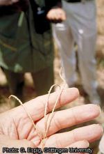 | Fonio is susceptible to rust (Puccinia oahuensis). Resistance to the nematodes Meloidogyne incognita and Meloidogyne javanica has been recorded in soils where other plant species were infected. Birds can cause serious losses, so bird scaring is usually necessary. Fonio is attacked by parasitic plants of the genus Striga. Fonio seed is not liable to damage by storage pests and stores well. | |||
