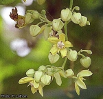 | In tropical Africa north of the equator flowering takes place from May to August with a peak in June to July; south of the equator Mondia whitei flowers from October to March, with a peak between November and January. The flowers have a slightly fruity, unpleasant odour, which becomes stronger in the afternoons; they are probably pollinated by flies. They remain open for between 3 and 4 days. | |||