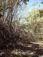Oxytenanthera abyssinica is rarely managed systematically, but weeding of newly established clumps, and removal of overhead shade, is recommended. Spacing of nursery raised seedlings has been 3.8 m × 3.8 m or 5 m × 5 m in experiments and in arboreta. In mixed plantations with hardwood trees the spacing is 6 m × 6 m. Clumps take up to 6 years (from rhizome offsets) or 8 years (from seedlings) to reach the stem harvesting stage. From the third year, thinning (50% of shoots from previous years) appeared justified in a planted stand in Kenya, because individual stems were smaller when stem numbers were high. Clumps for sap (‘wine’) production are typically established within areas cropped for maize, potatoes, pyrethrum or wheat. These clumps are thinned from the second year onwards to prevent stem congestion, while pruning branches to around 2 m favours access, and loosening peripheral soil promotes rhizome extension and unhindered shoot emergence. A pure stand of Oxytenanthera abyssinica contains up to 750 clumps and 30,000 stems per ha. |