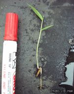 Oxytenanthera abyssinica is usually raised from seed. The weight of 1000 grains is 70–110 g. They remain viable for 6–18 months if stored at ambient temperatures under dry and pest-proof conditions. Storage for some months before use has been advised. Germination percentages vary from 30% to 80% and germination periods from 11 days in warm moist conditions to 4 months in cool dry conditions. Seeds are sown in nurseries when the mean daily temperature is 20°C or higher. The nursery period may last 8–24 months. Transfer to field sites is done in the early part of the rainy season, suitable plants having two shoots, the larger one at least 30 cm long. Where flowering is infrequent, rhizome division is a realistic option for establishing new clumps and it is used traditionally to establish clumps in farmland. It has also been used by the forestry service in Uganda. Early in the rainy season, rhizome sections 12–30 cm long bearing healthy buds, or the lowest 45 cm of a stem, are excavated and transplanted without delay. Oxytenanthera abyssinica can also be propagated by stem cuttings. |