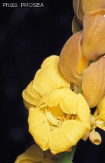 | Shrub up to 2(–5) m tall. Leaves arranged spirally, paripinnately compound with 8–20 pairs of leaflets; stipules triangular, 7–10 mm long; petiole 2–3 cm long; leaflets oblong-elliptical, 5–15 cm × 3–7 cm, base and apex obtuse, mucronate, hairy on midrib, veins and margin. Inflorescence an erect, terminal raceme 20–50 cm long, many-flowered; bracts elliptical, orange, enclosing flower buds. Flowers bisexual, zygomorphic, 5-merous; sepals oblong, 10–20 mm × 6–7 mm, orange-yellow; petals ovate-orbicular, 16–24 mm × 10–15 mm, bright yellow; stamens 10, the 2 lower ones largest with filaments 4 mm long and anthers 12–13 mm long, 5 medium-sized, 3 short and rudimentary; ovary superior, woolly, recurved, style slender, short. Fruit a winged pod 10–15 cm × 1.5–8 cm, wings 4–8 mm large, black, glabrous, dehiscent, up to 50-seeded. Seeds quadrangular, flattened, 7–8 mm × 5–8 mm, shiny. | |||