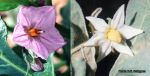 | Germination is epigeal, after which the cotyledons expand and the first true leaves form a rosette. New leaves rapidly increase in size and flowering starts (40–)70–100 days after sowing. As the first flowers are initiated, branching and subsequent production of smaller leaves occurs. Most cultivars of Kumba Group in dry hot savanna areas have a shorter growth cycle and flower earlier. Unlike Solanum melongena, all flowers are functionally bisexual and can set fruit. They are bee-pollinated, mainly by the genera Exomalopsis and Apis. Growth and flowering may continue indefinitely, but are suppressed once sufficient fruits have set. The small fruits of Shum Group ripen rapidly, turning red; they are eaten by birds, which disperse the seeds. The much larger fruits of Gilo Group and Kumba Group ripen more slowly and stay firm even when red or yellow, and can be stored for weeks or even months. In the dry season, plants may become dormant and appear to be dead, but can revive in the next rainy season, although they are then not very productive. | |||