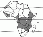 | Trichilia dregeana has a disjunct natural distribution area in tropical Africa. It occurs from Ethiopia south to South Africa, especially in the mountain ranges of the Eastern Arc and along the Rift Valley. In West and Central Africa it occurs in areas far remote from each other, in Guinea, Côte d’Ivoire, Cameroon, in Congo, DR Congo and Angola. It is absent from the central Congolian rainforest, but is reported from the Arabian peninsula. It is planted in many countries as an ornamental. | |||