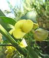 | Twining or trailing perennial herb; stem up to 6 m long, hairy but glabrescent. Leaves alternate, 3-foliolate; stipules up to 5 mm long; petiole up to 8.5 cm long, rachis 0.5–2 cm long; leaflets ovate-lanceolate to lanceolate, 2.5–10 cm × 0.5–4.5 cm, base rounded or cuneate to truncate, apex acute to obtuse. Inflorescence an axillary false raceme; peduncle 12–35 cm long, rachis up to 5.5 cm long, with flowers in pairs at each node. Flowers bisexual, papilionaceous, 1–2 cm long, yellow. Fruit a linear, curved pod, slightly constricted between the seeds, 5.5–8 cm long, with short curved beak. Seeds up to 4.5 mm × 3.5 mm. Vigna comprises about 80 species. However, the tropical American species are likely to be placed in a separate genus in the near future, which would reduce the genus to 50–60 species. Important crops that belong to the genus are cowpea, mung bean, rice bean and bambara groundnut. A hairy variant of Vigna luteola, formerly known as Vigna fischeri, is common in East Africa at higher altitudes (over 1500 m). The blue-flowered Vigna membranacea A.Rich. is found in DR Congo, Burundi and throughout East Africa; in Kenya the leaves are eaten after frying or boiling and are said to taste like cowpea leaves. Vigna luteola is nonspecific in its Rhizobium requirement. It is day-neutral and flowers throughout the year. | |||