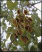 | Small, deciduous tree up to 10(–12) m tall; crown obovoid to rounded; bark grey-brown to creamy-brown, vertically fissured, exuding gum; branchlets glabrous to short-hairy, sticky or not. Leaves in whorls of 3–4 or sometimes opposite, simple and entire; stipules absent; petiole up to 1.5 cm long, leaving a prominent circular scar; blade narrowly to broadly ovate-elliptical to ovate, up to 15(–20) cm × and 9(–11) cm, apex acute or obtuse, base cuneate, papery to leathery, usually with sticky exudate, especially when young, sparsely scaly above, densely scaly beneath, but often very difficult to see due to the glutinous exudation, pinnately veined with 7–10(–13) pairs of lateral veins, usually prominent on both surfaces, reticulation slightly raised beneath. Inflorescences an axillary spike on elongated shoots or clusters of spikes on reduced axillary shoots, giving the appearance of a panicle, spike up to 7 cm long, shoots densely yellow-brown short-hairy. Flowers bisexual, regular, 4-merous, greenish yellow to white, fragrant; receptacle consisting of 2 parts, lower part 1.5–3 mm long, densely short-hairy, upper part funnel-shaped to broadly campanulate at the base and cup-shaped at apex, 2–3 mm × 2–3 mm, short-hairy; sepals broadly triangular, c. 1 mm long; petals free, spoon-shaped to obovate, 2–3 mm × 1–1.5 mm, glabrous; stamens 8, free, 5–6 mm long; ovary inferior, 1-celled. Fruit an almost circular to elliptical, 4-winged nut, 2.5–3.5 × 2.5–3 cm, with 5–7 mm long stipe and up to 12 mm broad wings, brown to reddish-yellow, sticky and slightly scaly, indehiscent, 1-seeded. Seedling with hypogeal germination; cotyledons transversely elliptical. | |||