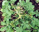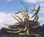 After sowing the first seedlings emerge after 6–8 days. However, germination is erratic, occurring over an extended period. Dormancy is much reduced some 6 months after the seeds have dried, and after 12 months most seeds germinate readily. Initial seedling growth is slow, especially when night temperatures are low. A deep root system is apparently formed first, later followed by foliage development. The highest growth rate occurs 5–6 weeks after germination. The leaves display strong circadian movements, which follow the direction of the sun. These movements are stronger at high light intensity and temperature. Like amaranths, spiderplant has a C4 cycle showing highly efficient photosynthesis under favourable conditions of temperature, soil moisture and light. Apical dominance is usually weak, as auxiliary buds start breaking between the second and third week of plant growth but there is considerable variation in this character with some plants having few branches only. Plants tend to start flowering 4–6 weeks after germination, usually when 60–90 cm tall; stress can trigger flowering even at the seedling stages. Regular picking and deflowering encourages lateral growth thus extending the harvesting period, which will be helped further by top dressing with a nitrogenous fertilizer and adequate moisture supply. After repeated harvesting the remaining plant will flower for an extended period until the rains stop. During the reproductive stage, which may take up to three months under favourable conditions, vegetative growth declines and leaves become senescent quickly. The fruits dry after a few weeks and dehisce to release dry seeds. Cleome gynandra is both self- and cross-pollinated. In Venezuela plant populations with either male or female flowers were found. Such populations have not been recorded in Africa. In studies carried out in Zimbabwe in 2001 it was observed that some flowers first develop stamens, others first the pistil. A population has been found with a few plants that show male sterility, producing short anthers that do not shed pollen. |