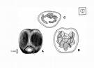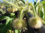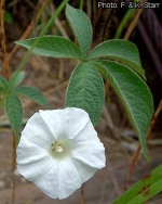 | Annual herb up to 6 m tall; stems slender, twining, long-hirsute. Leaves alternate, palmately compound with 5 leaflets; stipules absent; petiole 2.5–12 cm long; leaflets sessile, elliptical(-oblong), 2.5–12 cm × 1–4 cm, base acute, apex acuminate, margin entire, on both surfaces appressed hairy. Inflorescence a cyme, few to several-flowered; peduncle up to 22 cm long. Flowers bisexual, regular, 5-merous; pedicel up to 2.5 cm long; sepals unequal, the outer 3 ovate-lanceolate, 14–25 mm long, with coarse, stiff hairs, the inner 2 shorter, ovate, glabrous; corolla funnel-shaped, up to 3.5 cm long, white, glabrous; stamens inserted at 5 mm of the base of corolla tube, filaments unequal; ovary superior, 4-celled, style slender, c. 7 mm long, stigmas 2, round. Fruit a globose capsule 1.2–1.5 cm in diameter, apiculate, glabrous, pale brown, enclosed by persistent calyx, dehiscent by 4 valves, up to 4-seeded. Seeds trigonous, c. 4 mm long, brown, glabrous. In Benin Merremia aegyptia flowers in July and from October to December. Merremia comprises about 80 species, widely spread in the tropics. In tropical Africa about 32 species occur with several of them introduced as ornamentals or accidentally as weeds. | |||
